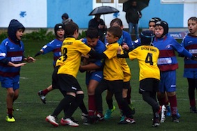 si può aspettare. Ma questi dettagli diventano irrilevanti quando senti l’arbitro fischiare l’inizio della prima sfida Amatori U10 /Spezia. La grinta e la tenacia con cui si schierano i nostri ragazzi Azulgrana durante tutti i 15’ di gioco ci riscaldano totalmente gli animi e vederli, per me in particolare dopo tanto tempo, è stato bello e divertente. Finisce 4-2 per noi e questo li rende orgogliosi e forti per affrontare il Recco con il giusto piglio. Aperture, passaggi, sostegno ai propri compagni e mete li portano alla seconda vittoria. Ultimo incontro, forse il più temuto, anche la stanchezza fa il suo gioco, le attenzioni iniziano a diminuire e se il proiettile n°8 del Cogoleto parte diventa difficile afferrarlo, sguscia via dalle mani come un’anguilla. Ed ecco il fischio finale Amatori 2- Cogoleto 4, prima delusione della stagione. Dopo due mesi di vittorie , “finalmente” una sconfitta, si gioca e si perde tutti insieme… GRANDI RAGAZZI E GRANDE COACH AMMAZRAFF
